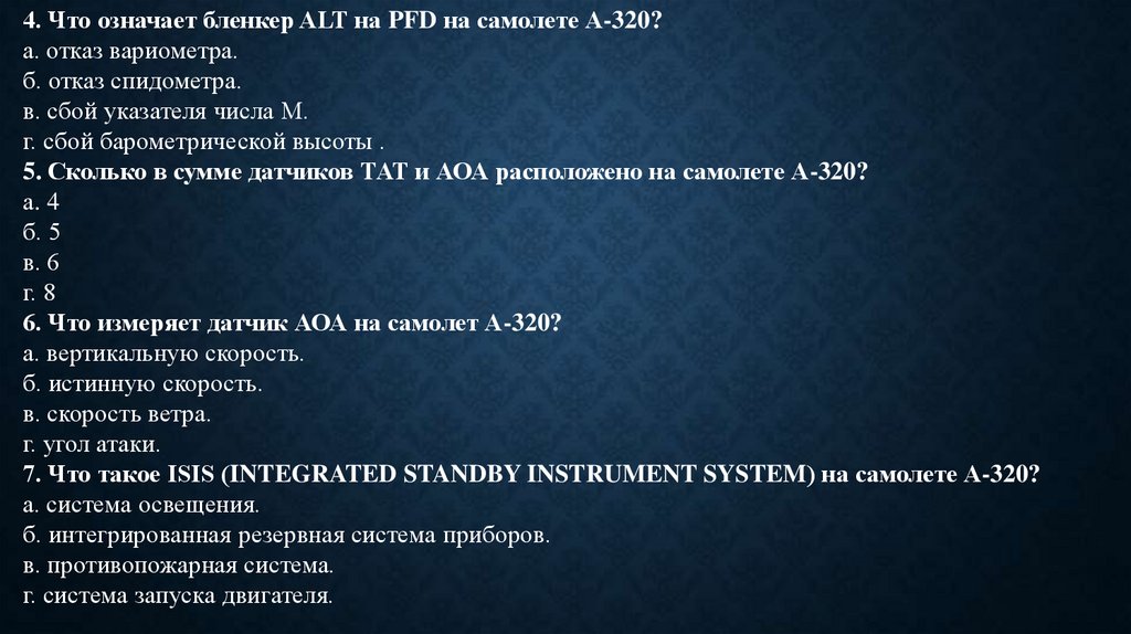 4. Что означает бленкер ALT на PFD на самолете А-320?а. отказ вариометра.