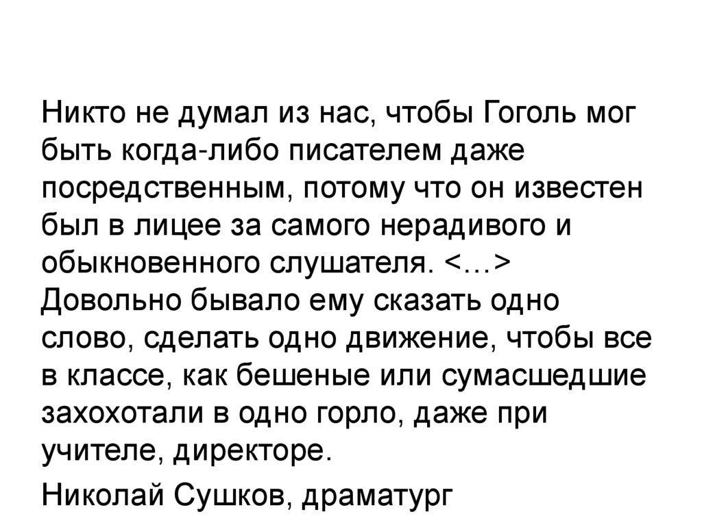Никто не думал из нас, чтобы Гоголь могбыть когда-либо писателем даже