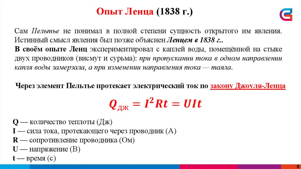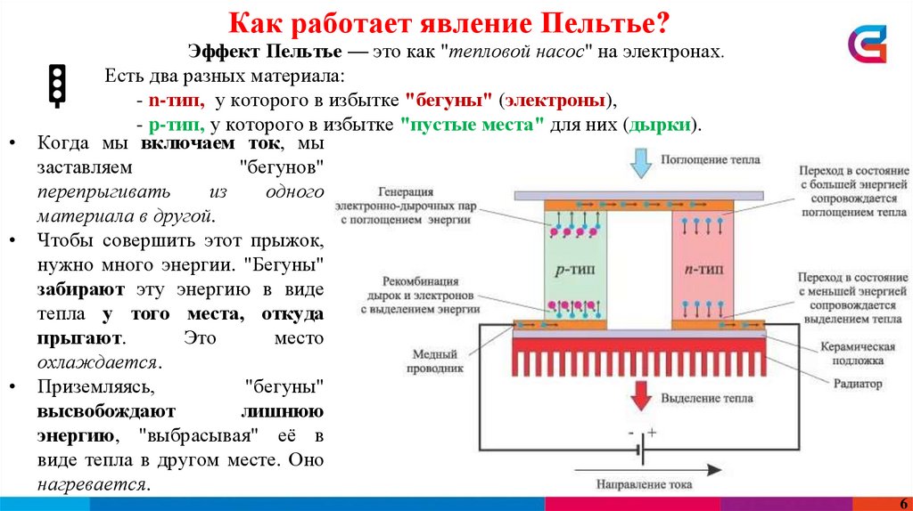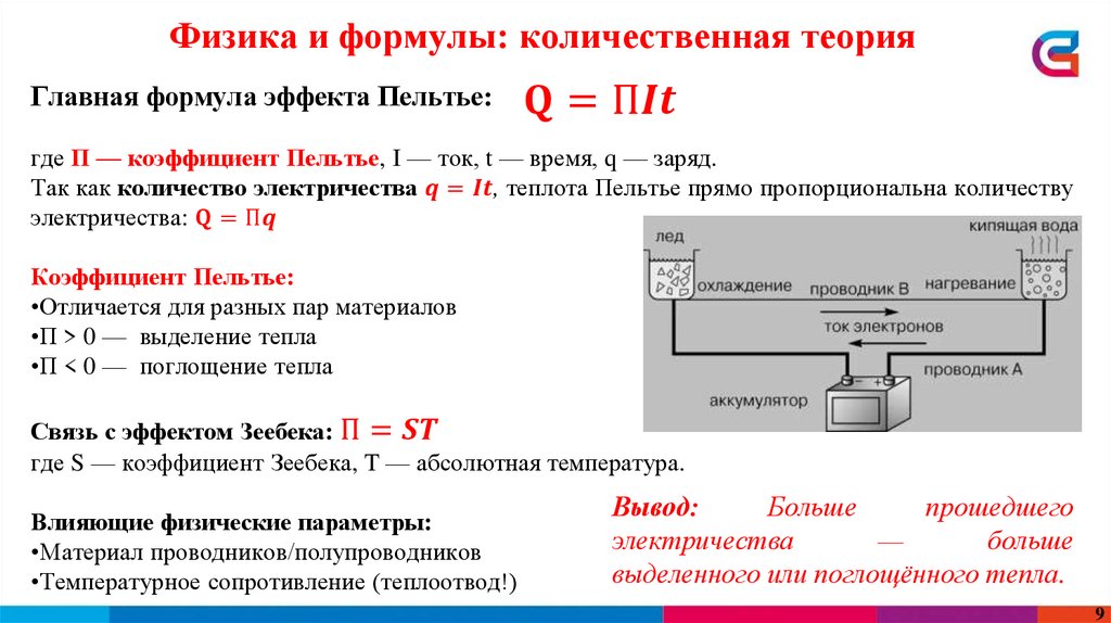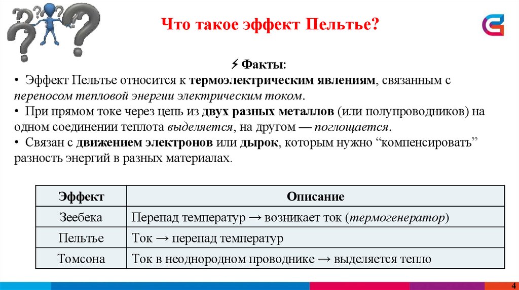 разных металлов при прохождении электрического тока (эффект Пельтье).
