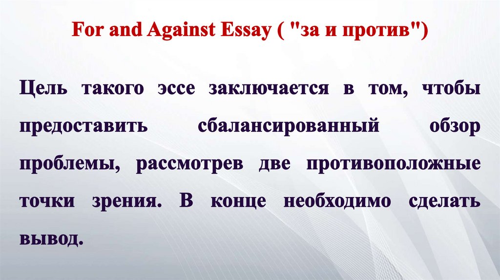 Презентация по английскому языку на тему _Эссе за и против_ (7 класс)