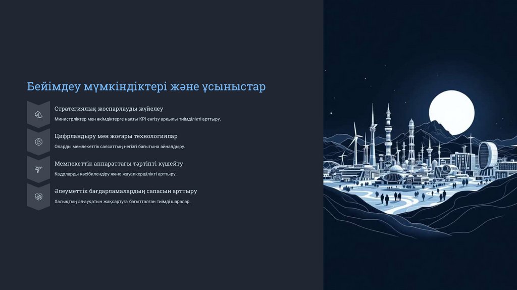 басқару жүйесін жетілдіру, стратегиялық жоспарлауды күшейту және ұлттық