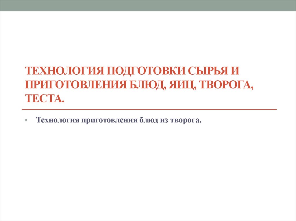 1. Технология подготовки сырья и приготовления блюд, яиц, творога, теста.