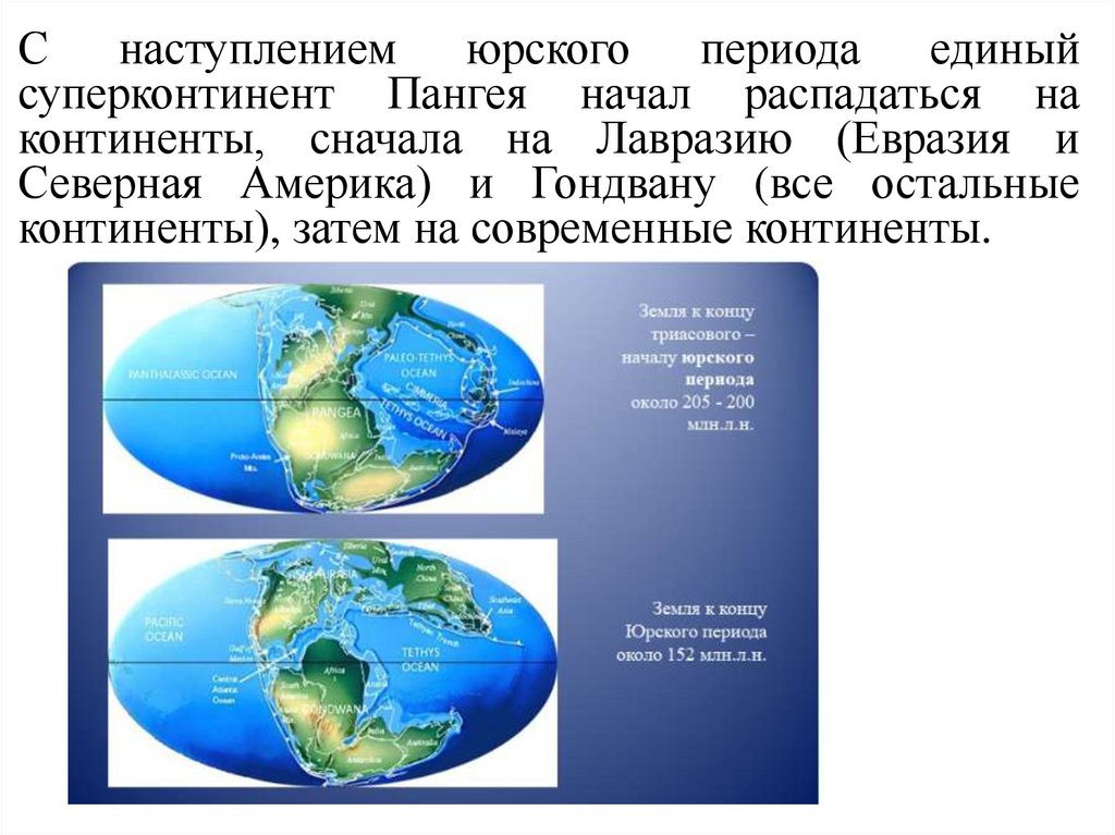 С наступлением юрского периода единыйсуперконтинент Пангея начал распадаться на