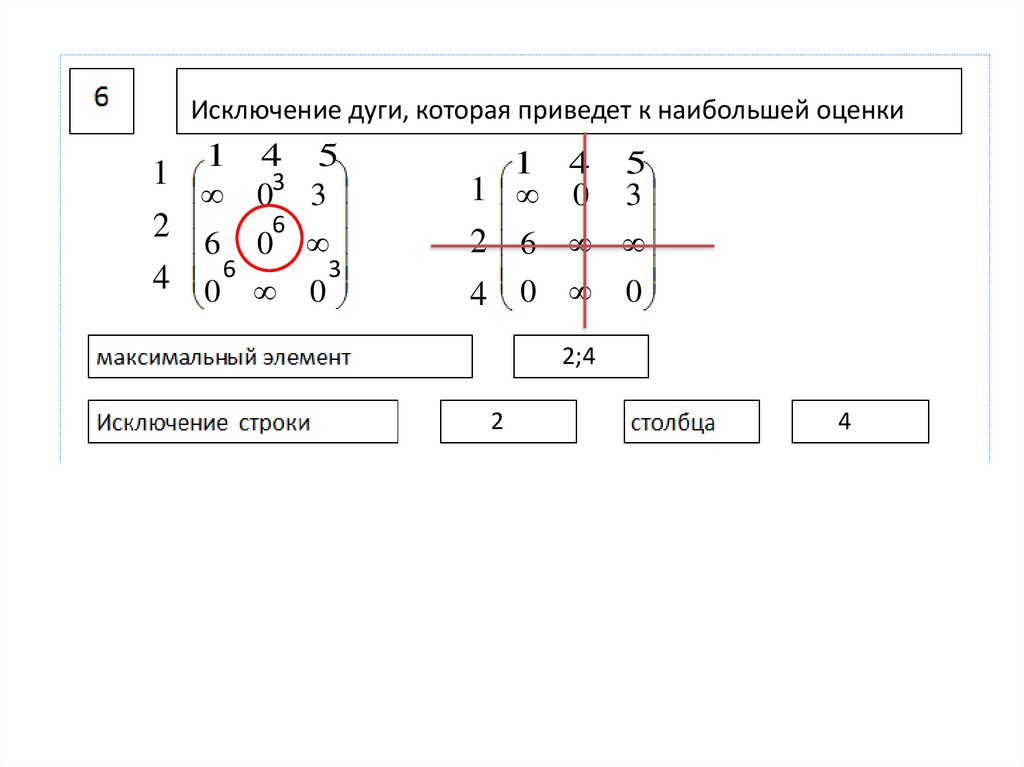 Исключение дуги, которая приведет к наибольшей оценки1 4 5