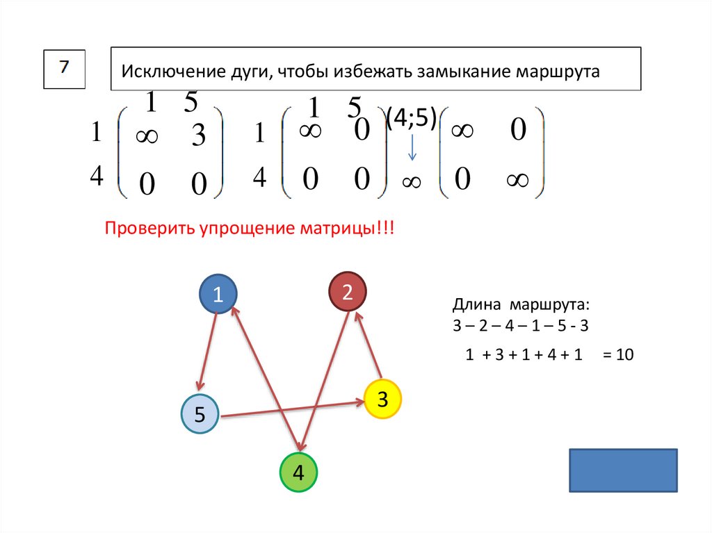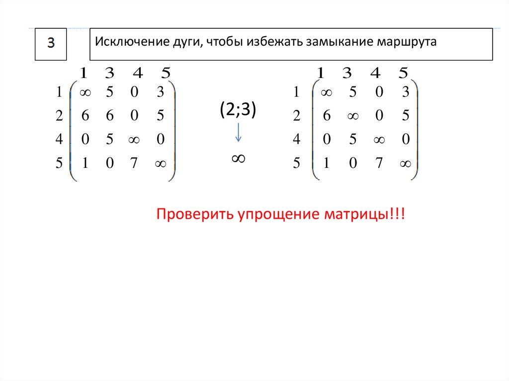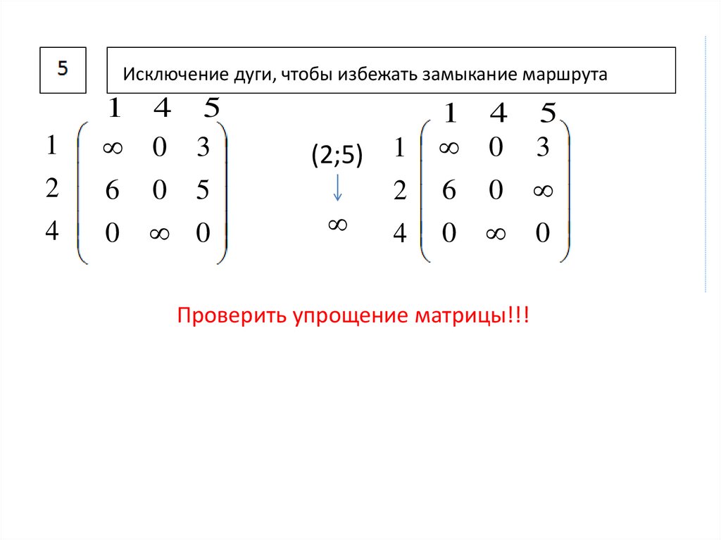 Исключение дуги, чтобы избежать замыкание маршрута1 5