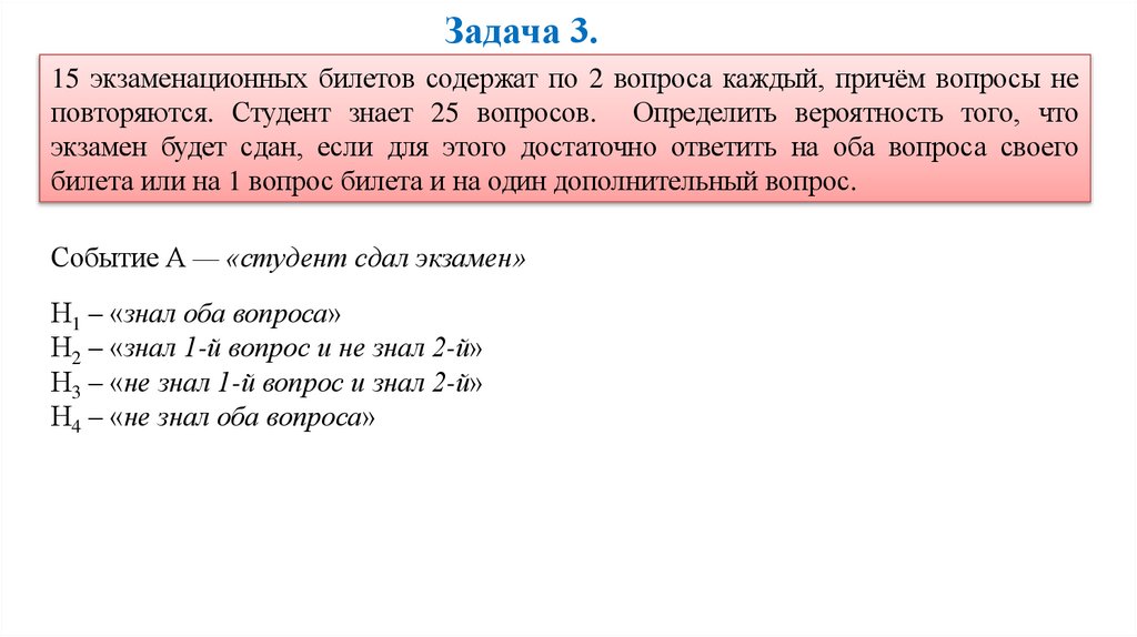 Н3 – «не знал 1-й вопрос и знал 2-й»