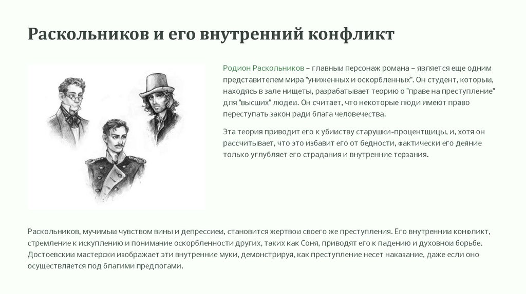 Раскольников и его внутренний конфликтРодион Раскольников — главный персонаж романа — является еще одним