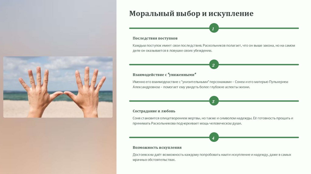 социальные проблемы, но и вечные вопросы морали, вины и искупления. Достоевский показывает, что истинное величие