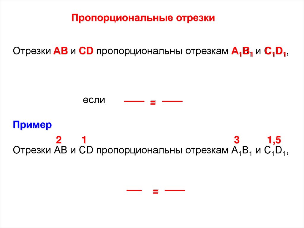 Пропорциональные отрезкиОтрезки АВ и СD пропорциональны отрезкам А1В11 и С