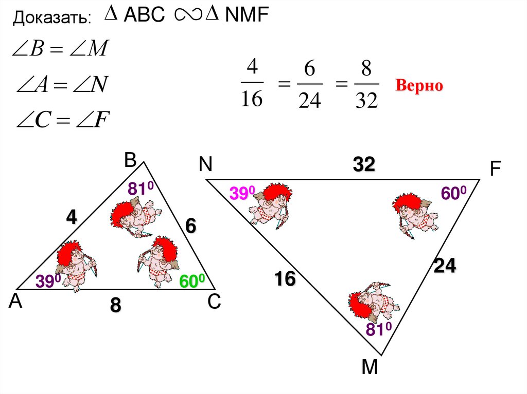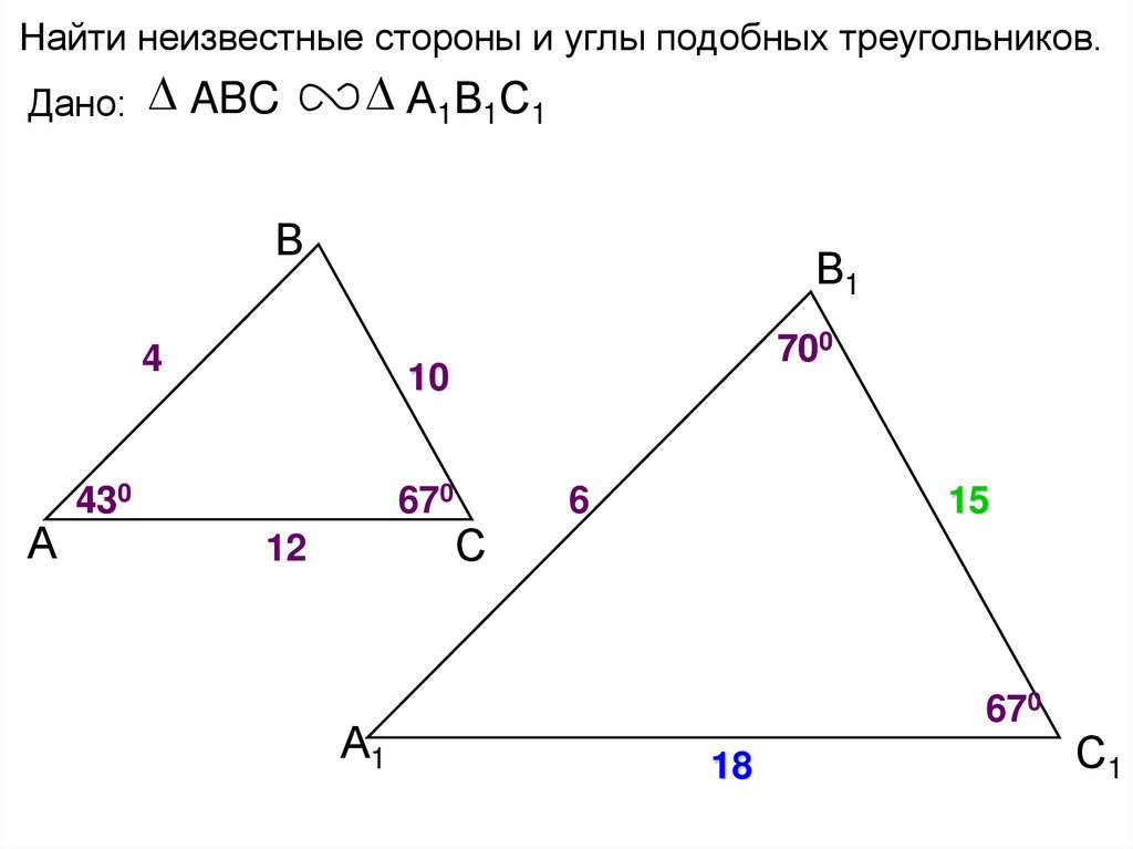 Найти неизвестные стороны и углы подобных треугольников.Дано: ABC