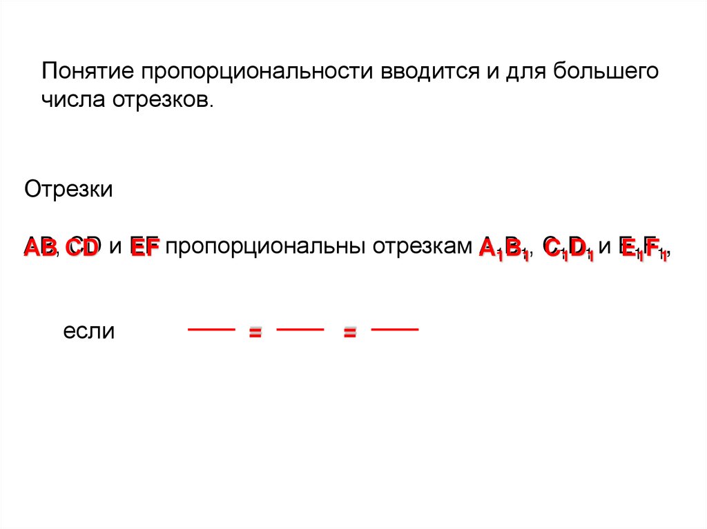 Понятие пропорциональности вводится и для большегочисла отрезков.