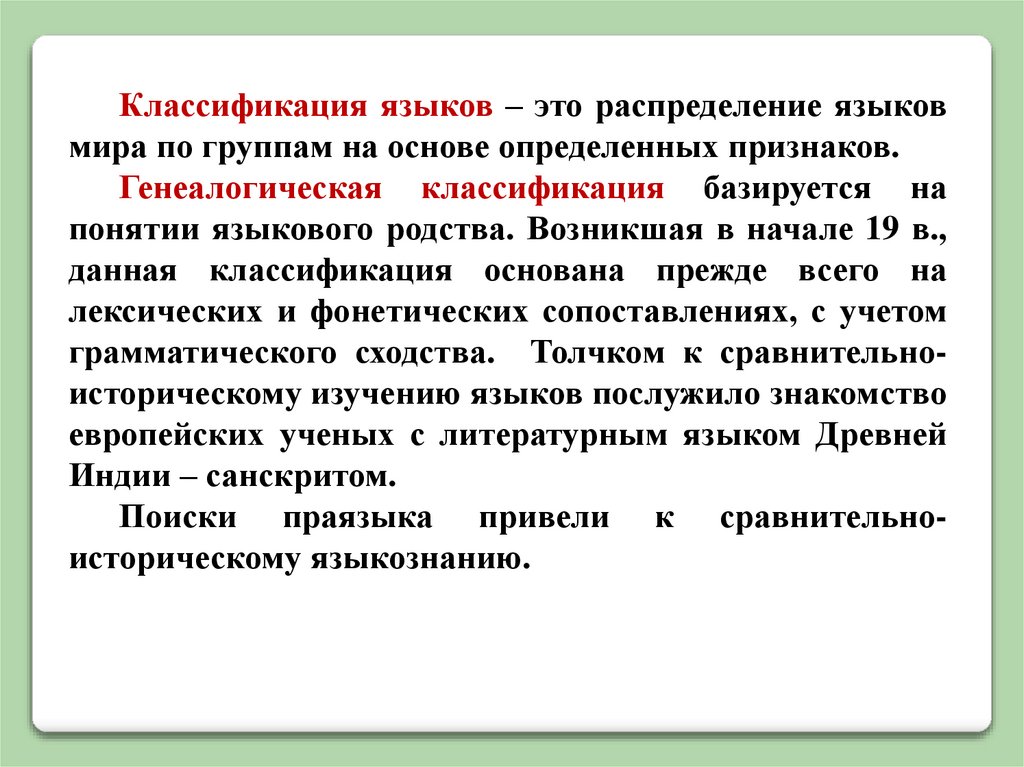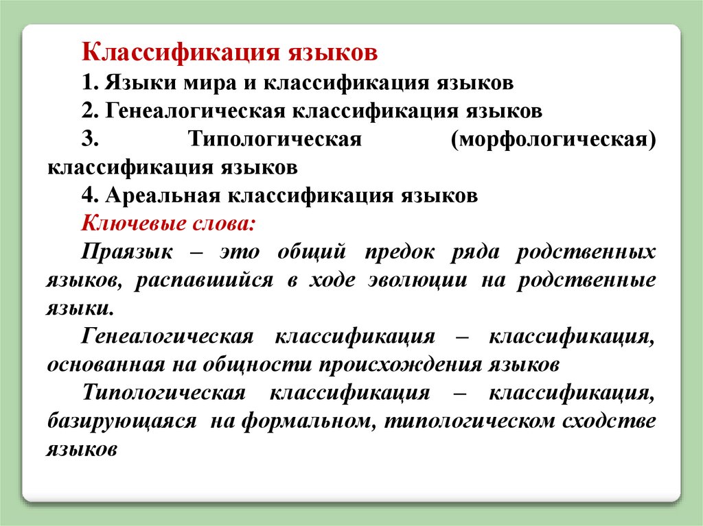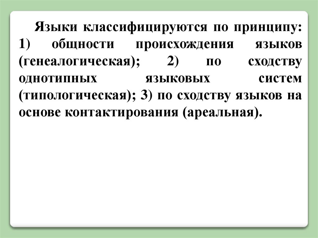 Классификация языков – это распределение языковмира по группам на основе определенных признаков.
