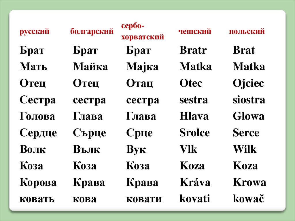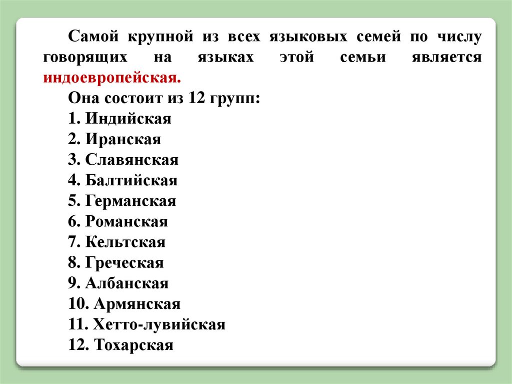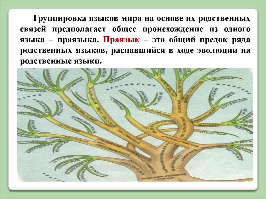 Группировка языков мира на основе их родственныхсвязей предполагает общее происхождение из одного