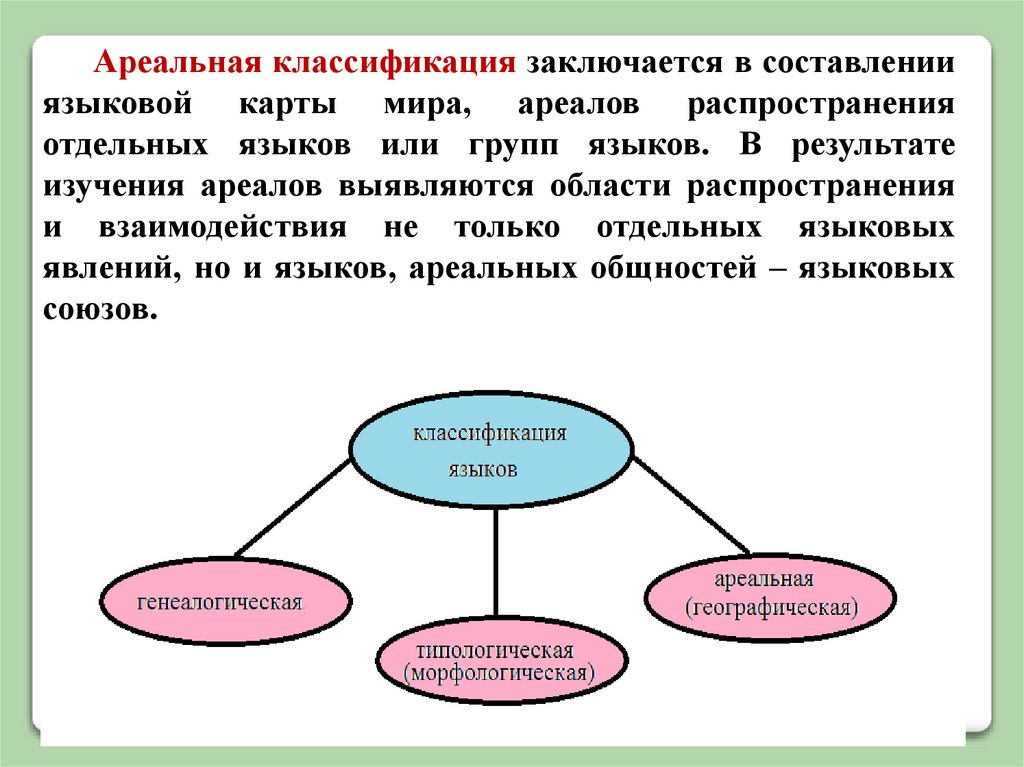 Ареальная классификация заключается в составленииязыковой карты мира, ареалов распространения