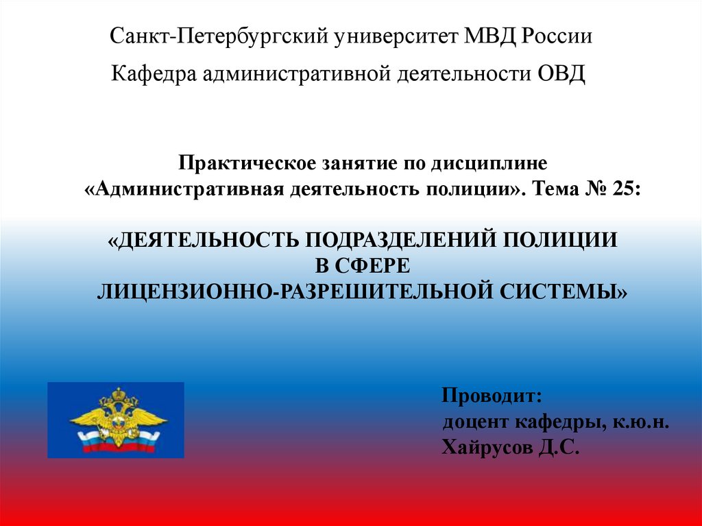 Санкт-Петербургский университет МВД РоссииКафедра административной деятельности ОВД