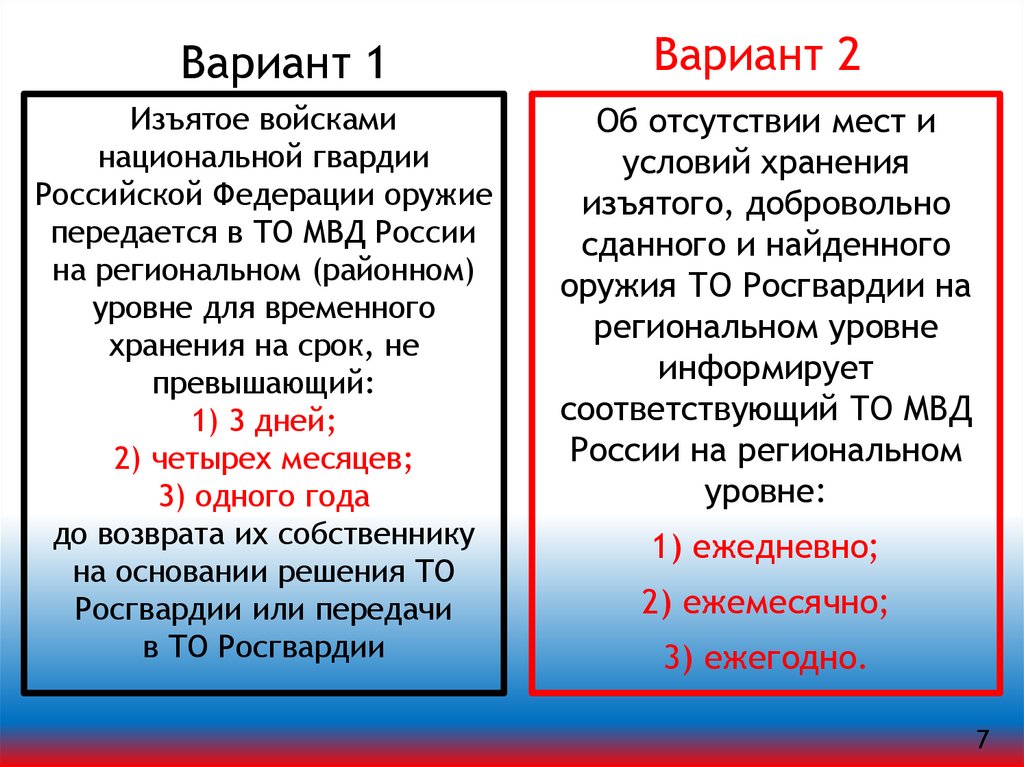 1) Федеральный закон от 7 февраля 2011 г. № 3-ФЗ «О полиции».2) Федеральный закон от 03.07.2016 № 226-ФЗ (ред. от 31.07.2025) «О войсках
