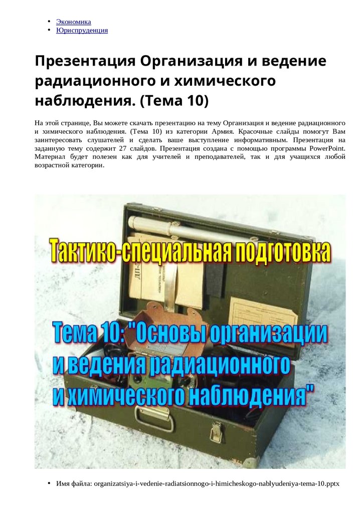 • Имя файла: organizatsiya-i-vedenie-radiatsionnogo-i-himicheskogo-nablyudeniya-tema-10.pptx