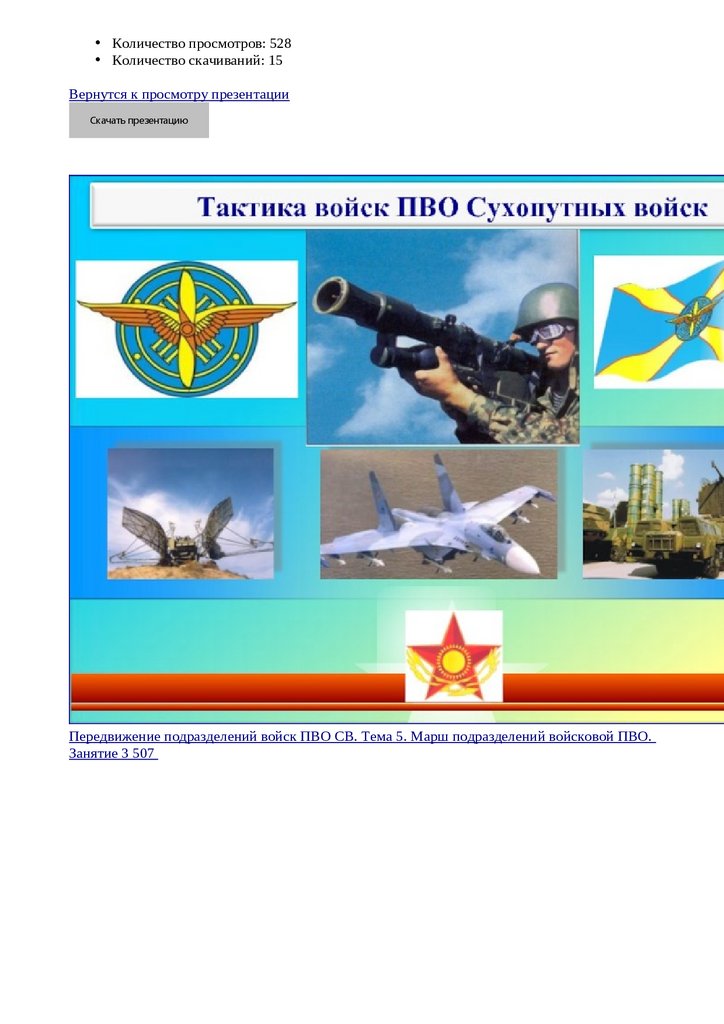 Передвижение подразделений войск ПВО СВ. Тема 5. Марш подразделений войсковой ПВО.