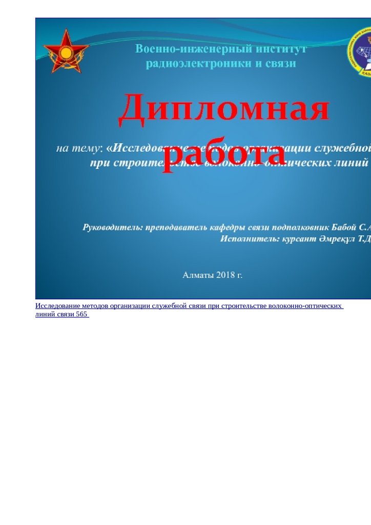 Исследование методов организации служебной связи при строительстве волоконно-оптическихлиний связи 565