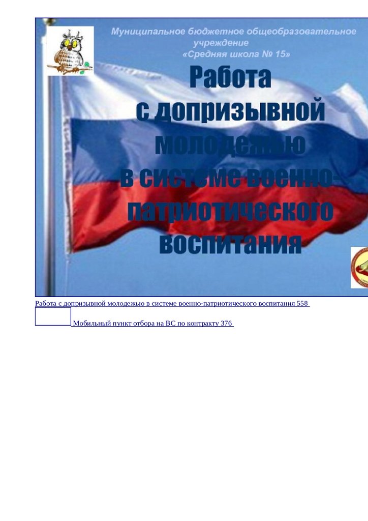 Работа с допризывной молодежью в системе военно-патриотического воспитания 558Мобильный пункт отбора на ВС по контракту 376