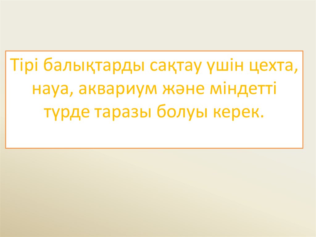 Тірі балықтарды сақтау үшін цехта,науа, аквариум және міндетті