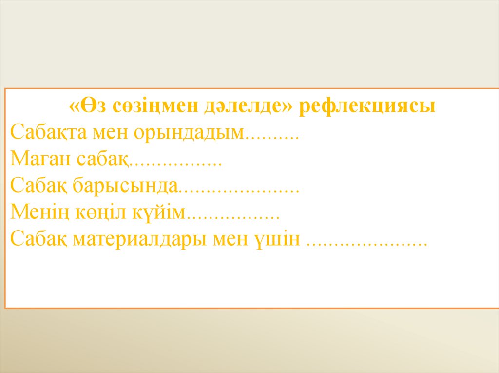 «Өз сөзіңмен дәлелде» рефлекциясыСабақта мен орындадым..........