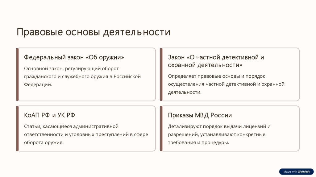 Правовые основы деятел ь ностиФедерал ь ный закон «Об оружии»