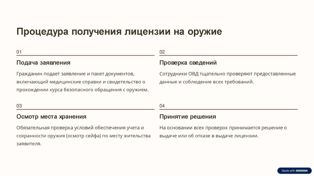 организаций. Процедура включает подачу документов, проверку сведений и осмотр места хранения (сейфа).