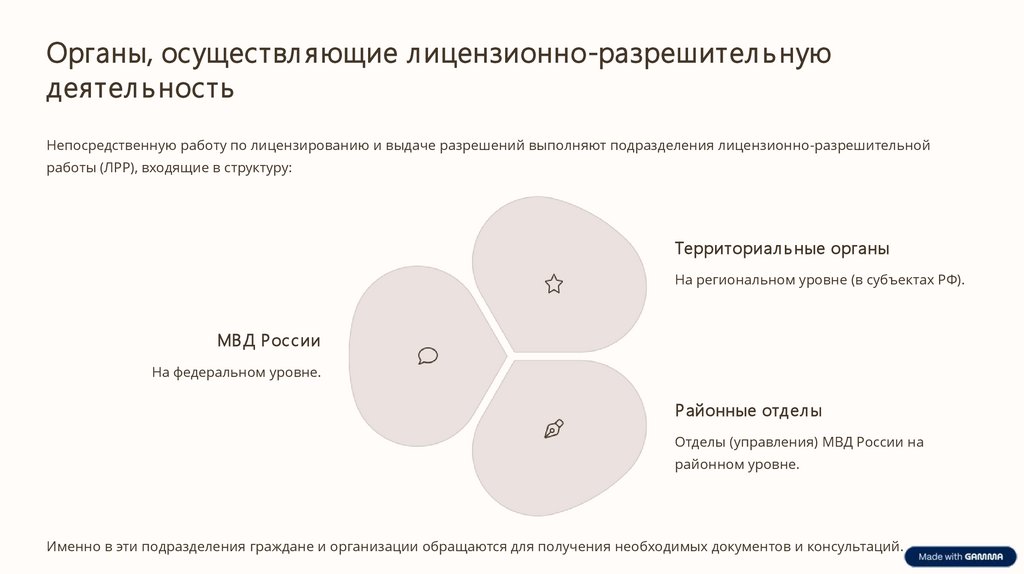 Органы, осуществл яющие лицензионно-разрешител ь нуюдеятел ь ность