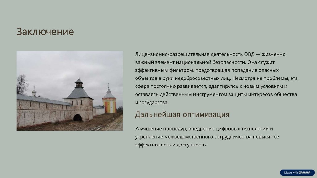 ЗаключениеЛицензионно-разрешительная деятельность ОВД — жизненно