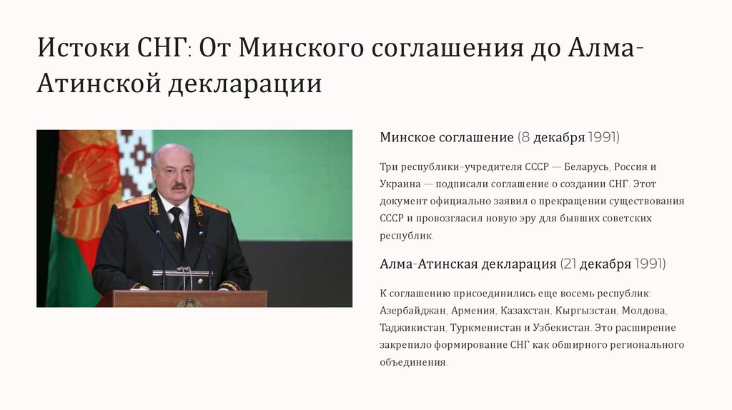 Истоки СНГ: От Минского соглашения до АлмаАтинской декларацииМинское соглашение (8 декабря 1991)