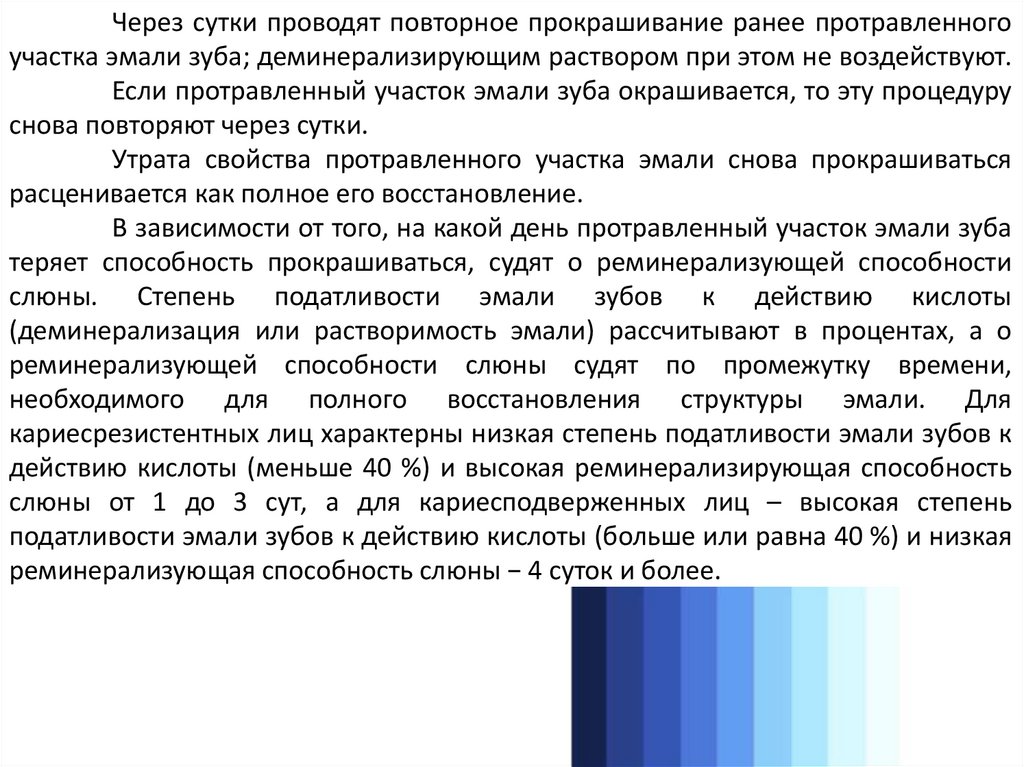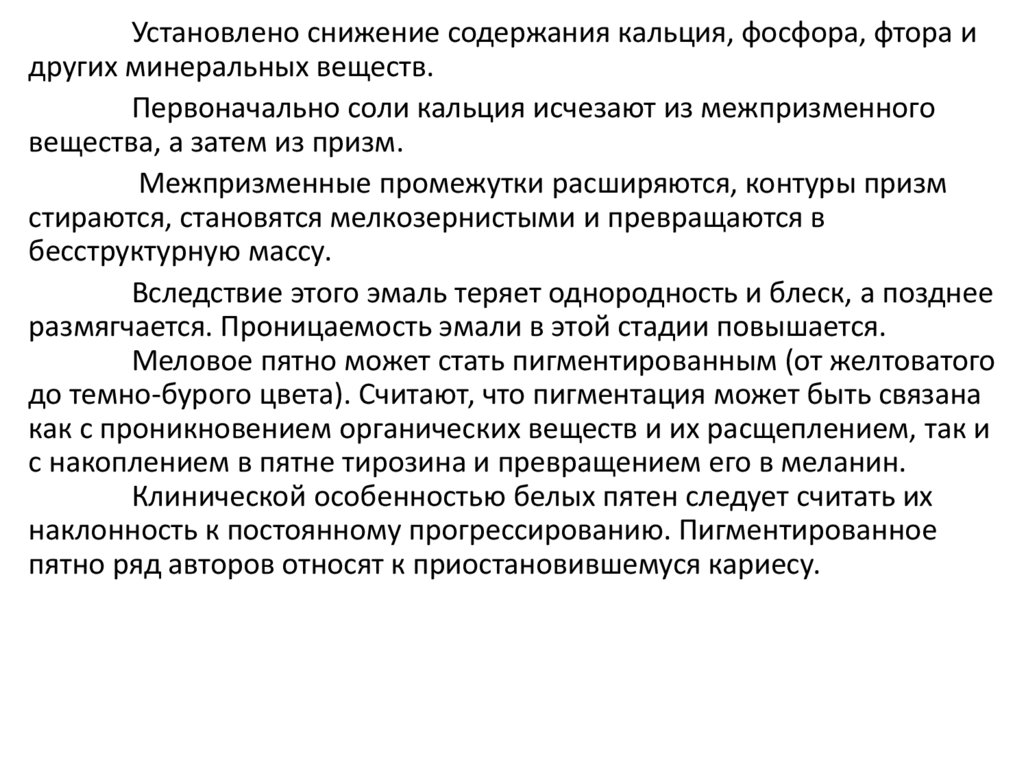 При уменьшении pН слюны происходит растворение кристалловапатитов эмали зуба, что приводит к деминерализации эмали. Этот процесс