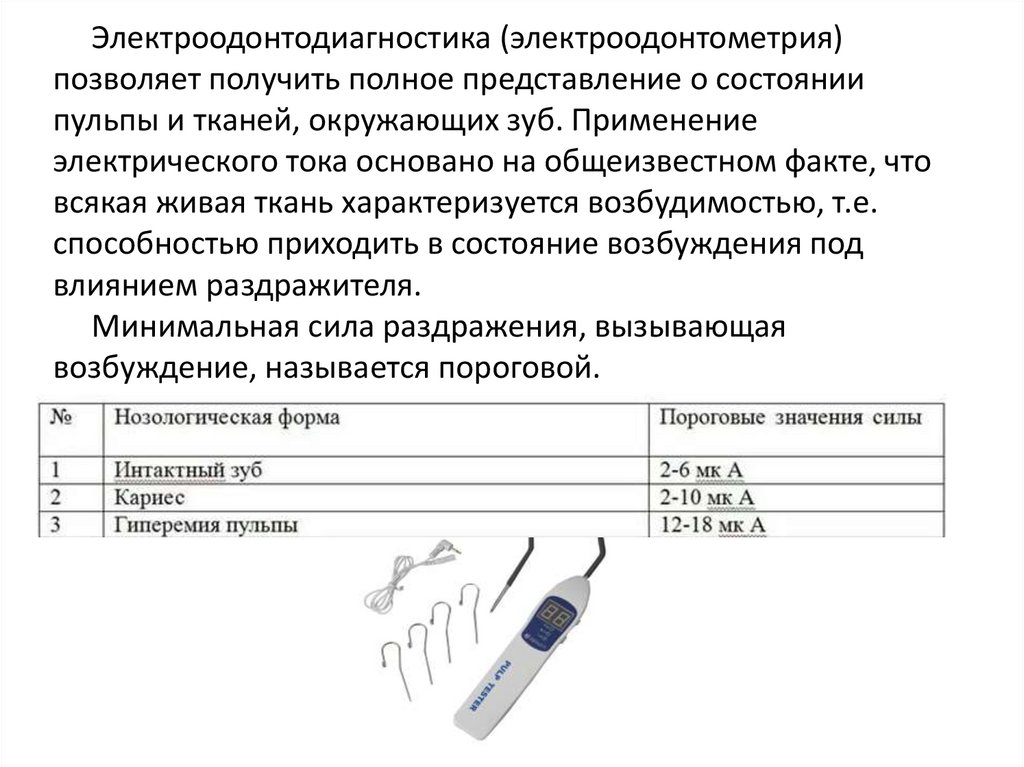 • “Диагнодент”- показания в пределах 11-18 единиц.
