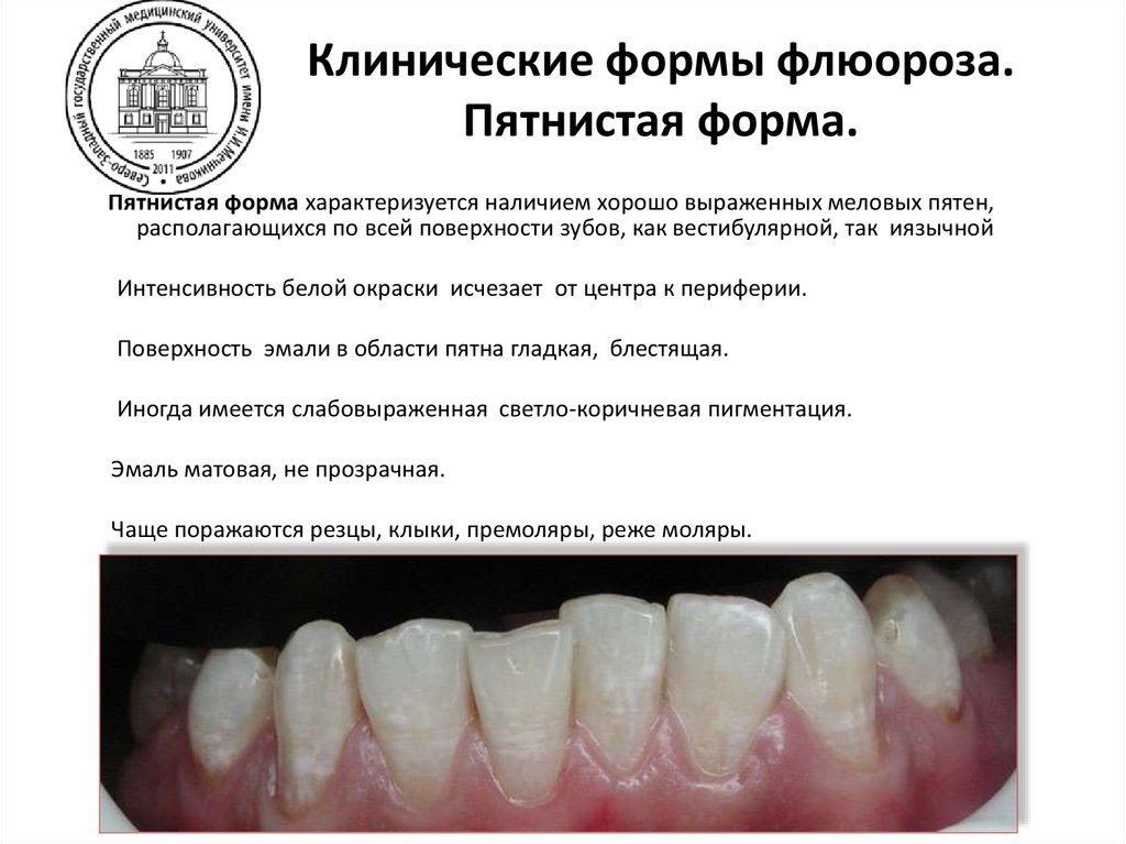 2. При флюорозе (меловидно - крапчатая форма и эрозивная