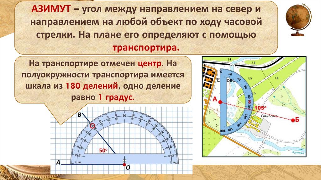 АЗИМУТ – угол между направлением на север инаправлением на любой объект по ходу часовой