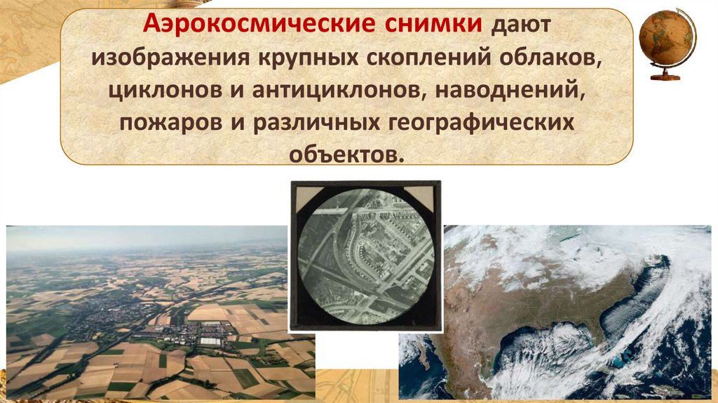 Аэрокосмические снимки даютизображения крупных скоплений облаков,