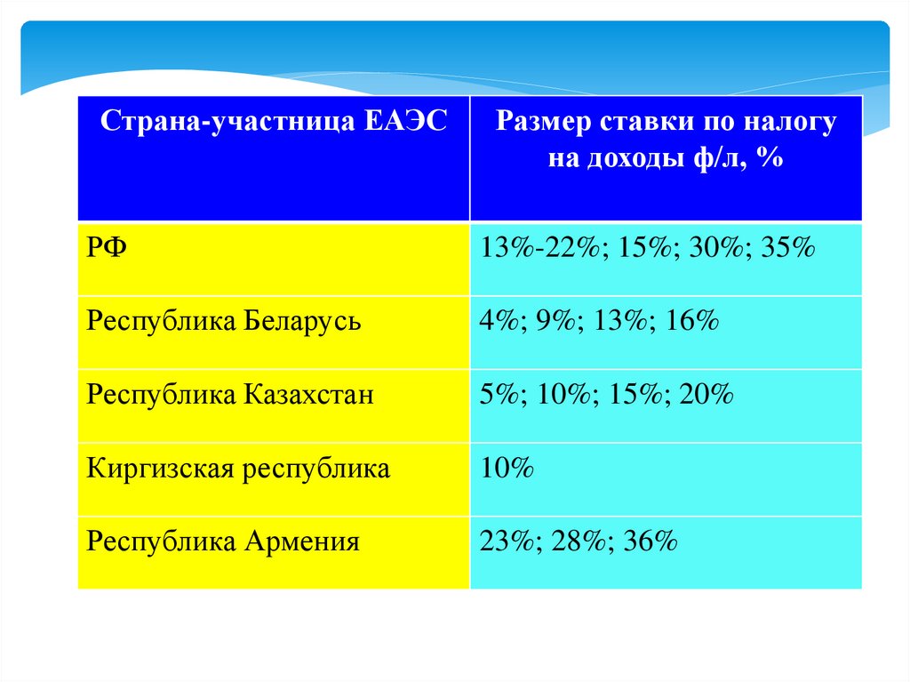 1. Налогообложение доходов физических лиц в странах-участницах ЕАЭС