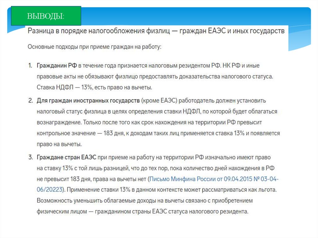 Налогообложение доходовфизических лиц в странахучастницах ЕАЭС