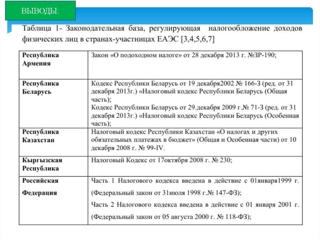 1 Законодательная база, регламентирующая налогообложениедоходов физических лиц в странах-участницах ЕАЭС