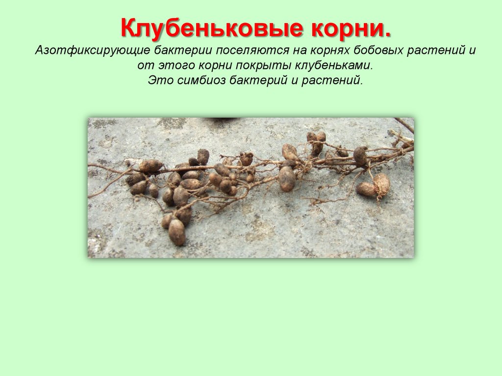 Клубеньковые корни.Азотфиксирующие бактерии поселяются на корнях бобовых растений и