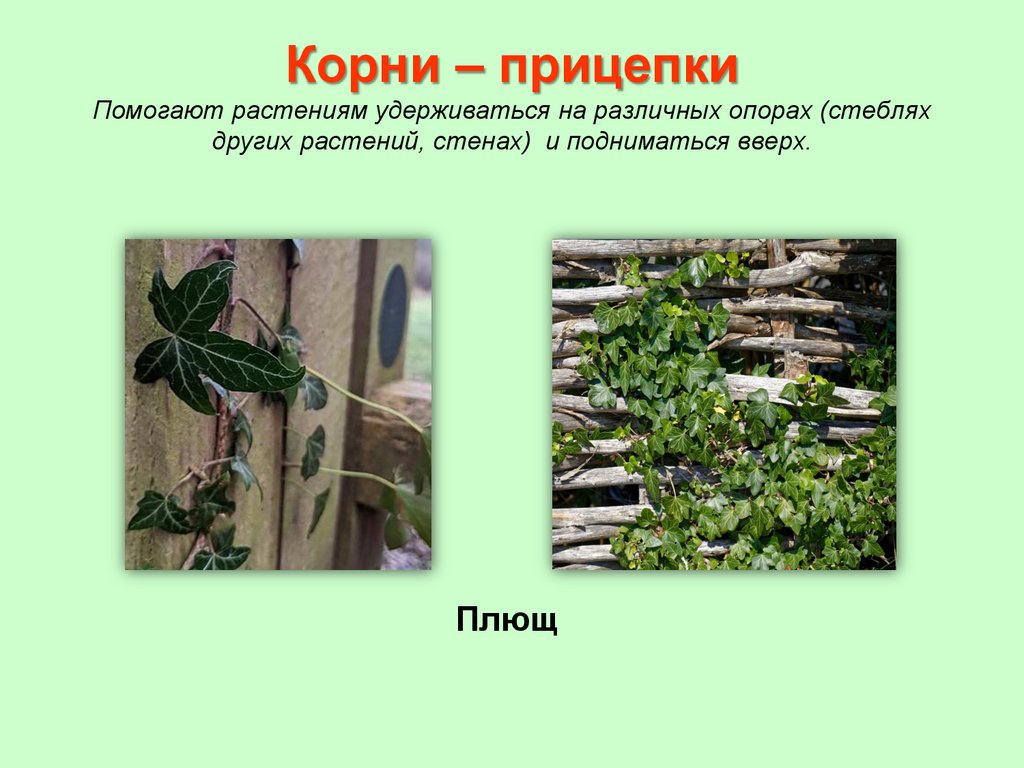 Корни – прицепкиПомогают растениям удерживаться на различных опорах (стеблях