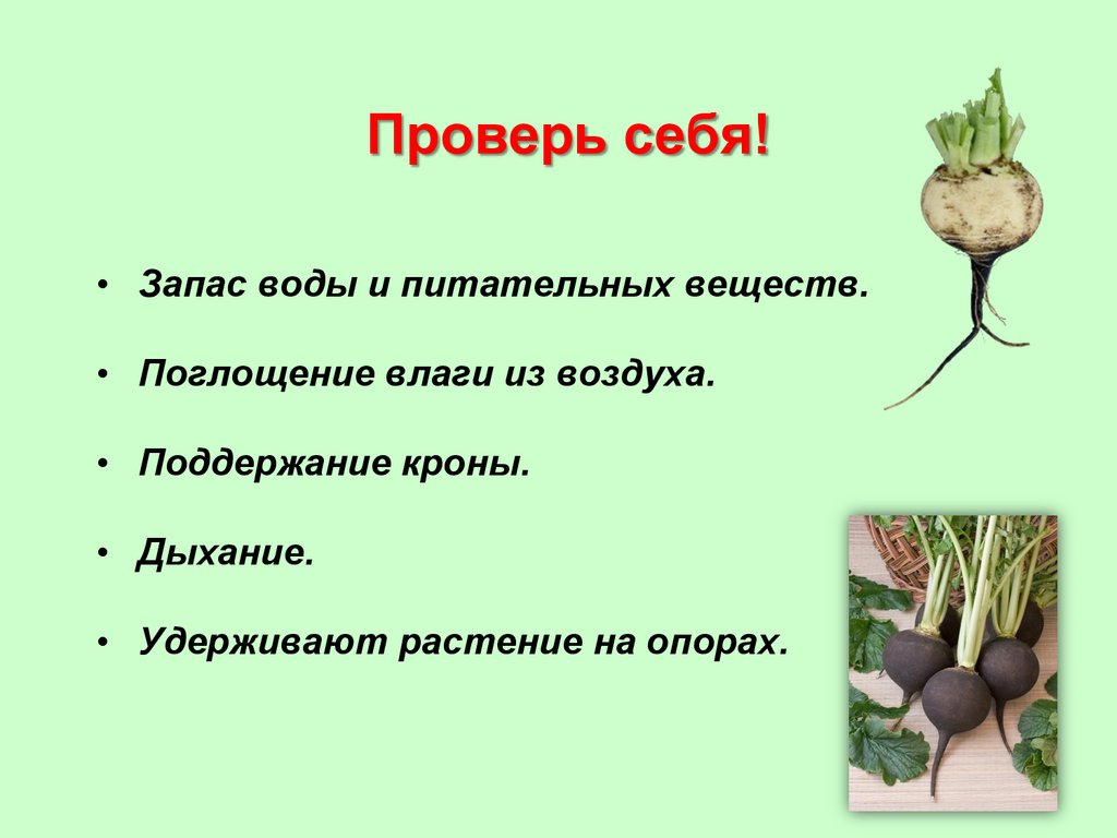 Поддерживают крону, поглощают воду и минеральные вещества из почвы.