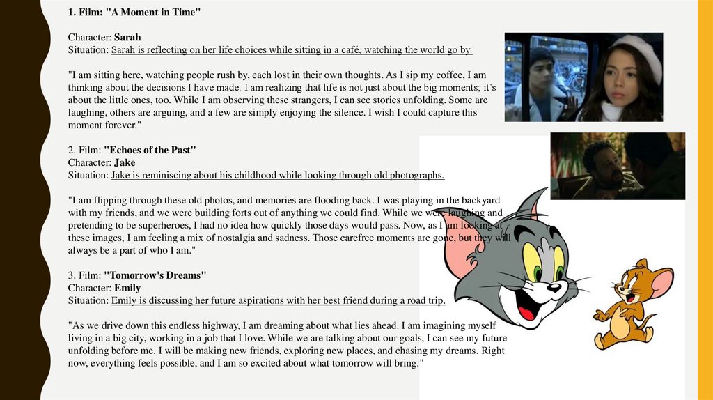 1. Film: "A Moment in Time"Character: Sarah