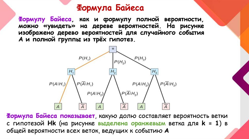 Формула Байеса показывает, какую долю составляет вероятность ветки