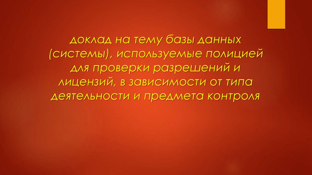 1. доклад на тему базы данных (системы), используемые полицией для проверки разрешений и лицензий, в зависимости от типа