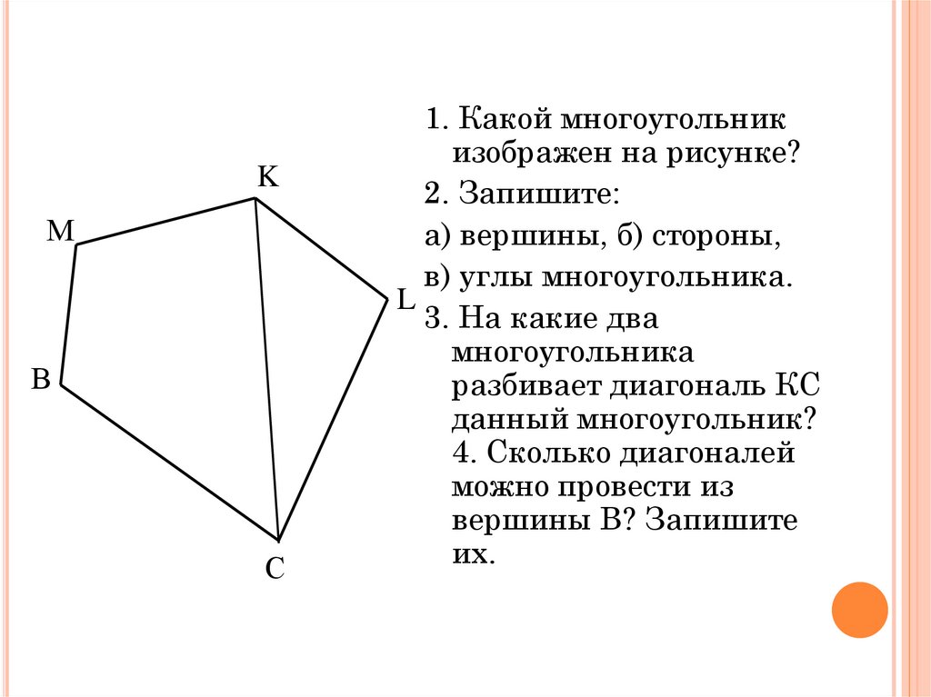 Определите для каждого многоугольника:1. Сколько диагоналей можно провести из одной вершины?