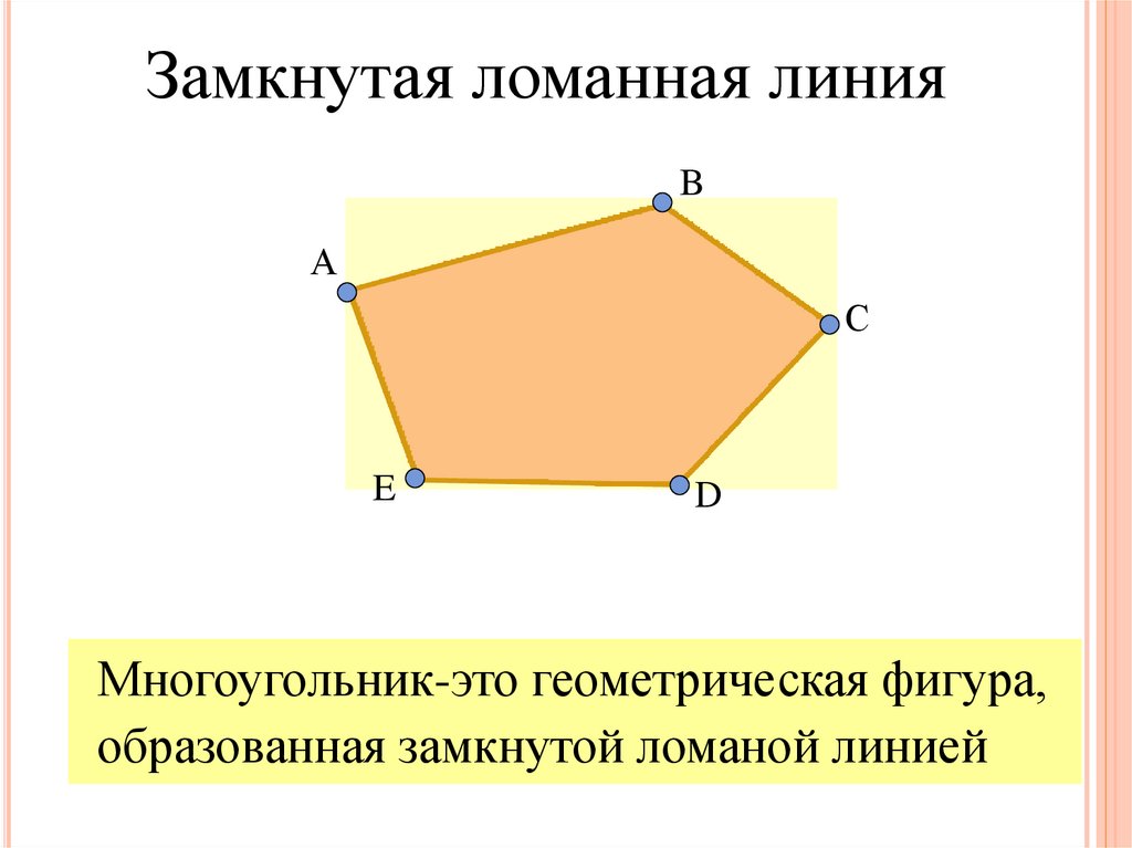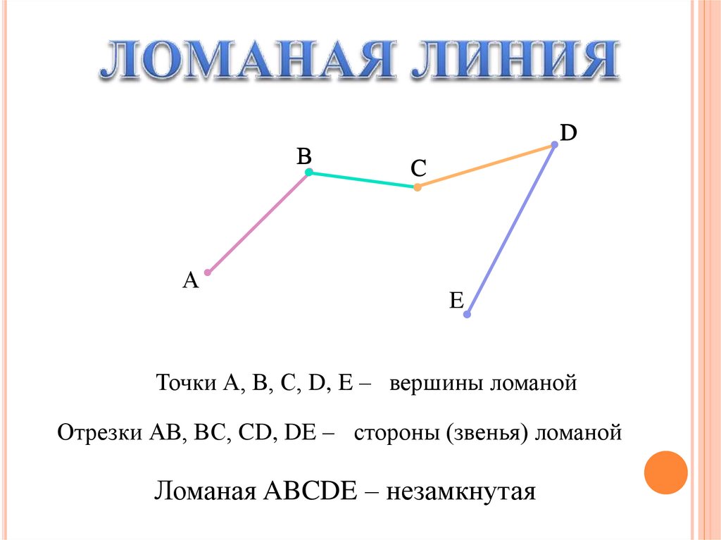 Отрезки АВ, ВС, CD, DE – стороны (звенья) ломаной