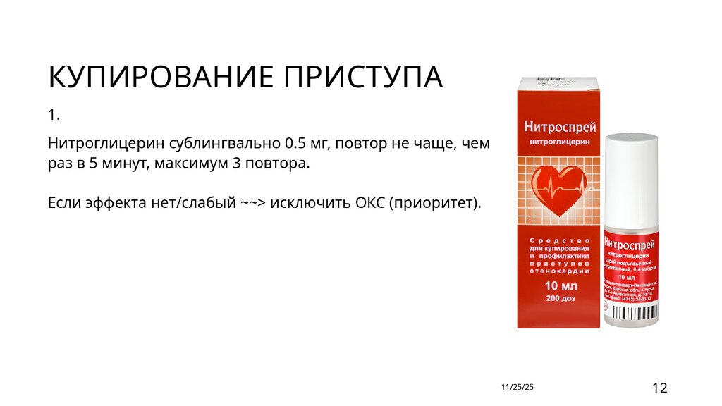 Нитроглицерин сублингвально 0.5 мг, повтор не чаще, чем