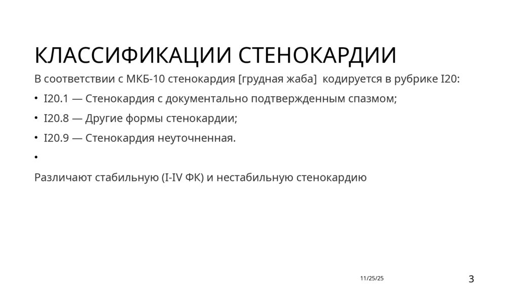 КЛАССИФИКАЦИИ СТЕНОКАРДИИВ соответствии с МКБ-10 стенокардия [грудная жаба] кодируется в рубрике I20: