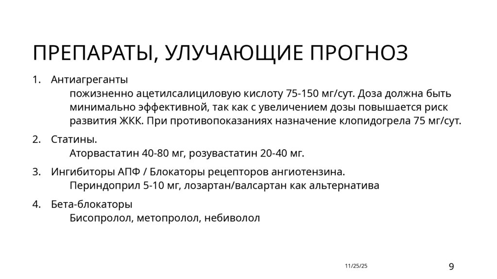 ПРЕПАРАТЫ, УЛУЧАЮЩИЕ ПРОГНОЗ1. Антиагреганты